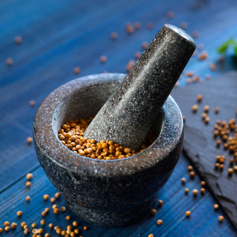 LE MORTIER - Pour moudre les épices, vous pouvez acheter un mortier en grès d'environ 6 pouces de diamètre. Ce sera beaucoup plus pratique pour mélanger. Il existe aussi des mortiers en bois, en céramique, en acier inoxydable. Gâtez vous avec celui que vous préférez, mais gardez en tête que si le fond est rugueux, meilleur la mouture sera. Moudre chaque épice séparément. Essuyez bien le mortier entre chaque épice. Si vous avez un mélange d'épices spécifique pour une recette, vous pouvez bien sûr, moudre le tout ensemble, mais cela prendra un peu plus de temps.