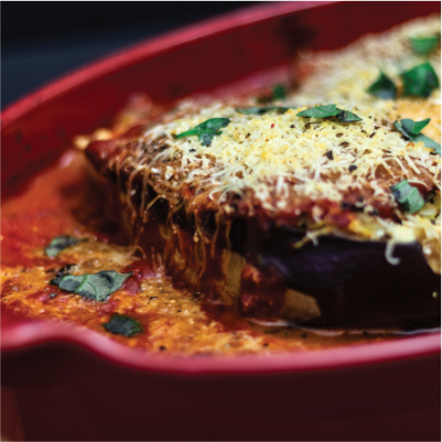 - Déposer délicatement les aubergines creuses dans un plateau qui va au four