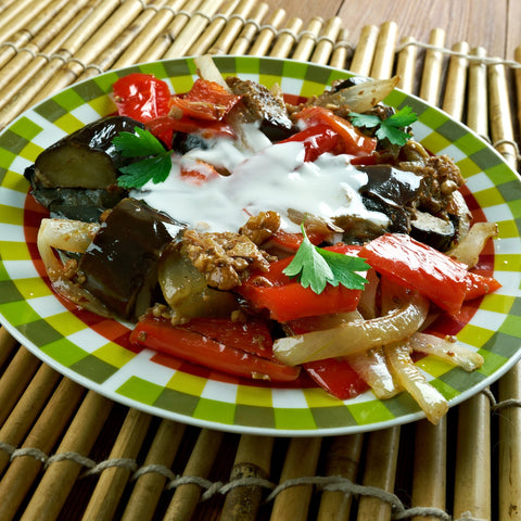 - Répartir le yogourt sur les légumes, couvrir et garder au chaud jusqu'au moment de servir