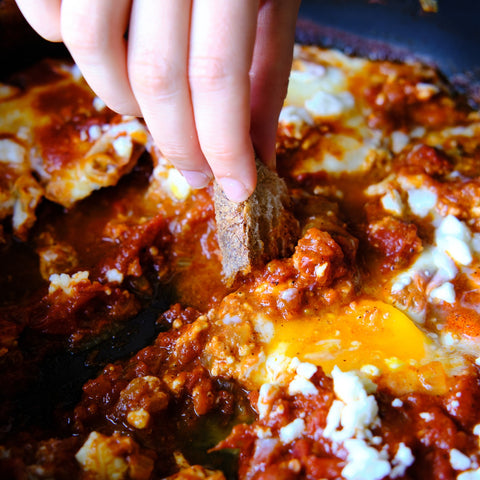 La Chakchouka est un plat du Moyen-Orient. C'est en fait une poêlée de légumes et tomates a laquelle on ajoute des œufs. Il y a différentes versions, voici la mienne.