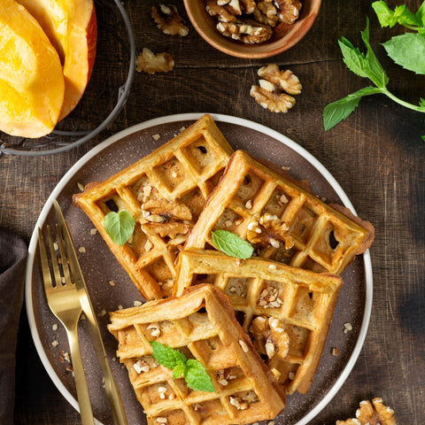 - Dans un gaufrier pré-chauffé, verser environ 1/3 tasse du mélange à gaufres à la citrouille et cuire