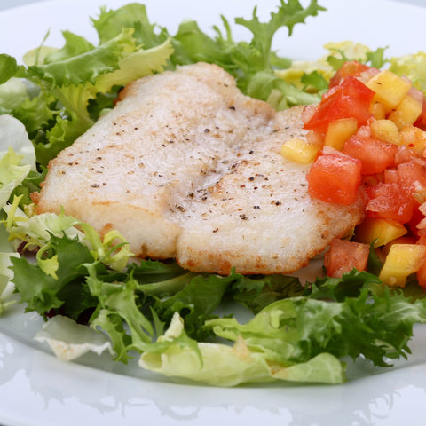 - Déposer le poisson cuit sur la laitue et garnir avec le concassé de tomate.