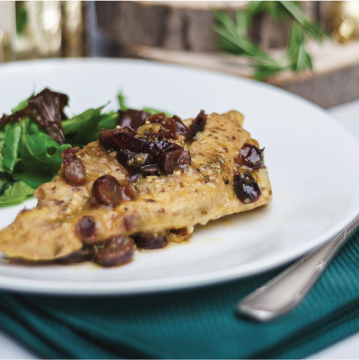 - Remettre les poitrines dans le liquide, couvrir et cuire à feu doux environ 20 minutes, dépendamment de l’épaisseur des poitrines. S'assurer qu’il n’y ait plus de jus rosé qui sort lorsque vous tranchez la poitrine. Servir avec un riz, du quinoa ou du couscous.