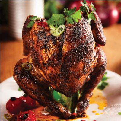 - Cuire environ 40 à 50 minutes ou plus selon la grosseur du poulet. La température devra être à 83°C lors qu’inséré dans une cuisse