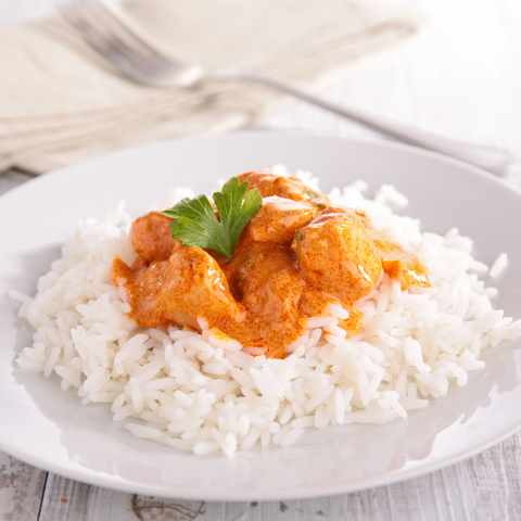 - A la fin, ajouter la crème champêtre, mélanger et servir sur un lit de riz blanc ou avec un pain Naan, garnir avec la coriandre.