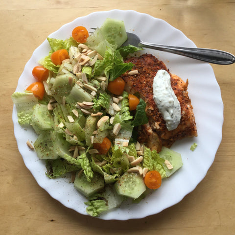 - Frotter le poisson avec un peu d'huile d'olive puis saupoudrer avec les épices. En mettre un bonne couche et presser pour que ça colle bien.