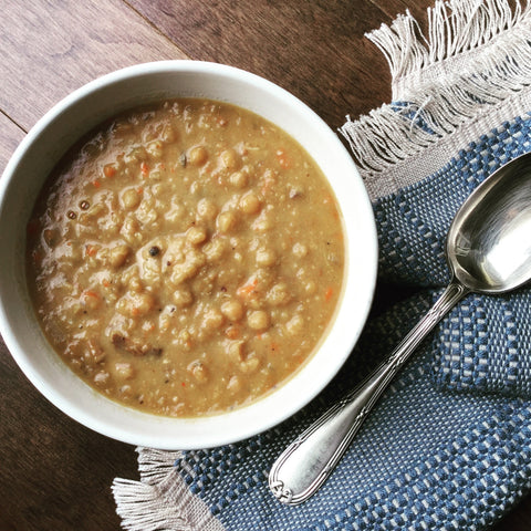 - Passer le bras mélangeur dans la soupe aux pois, de façon à réduire environ la moitié de la quantité en crème. Le résultat obtenu sera une soupe crémeuse et avec des morceaux.